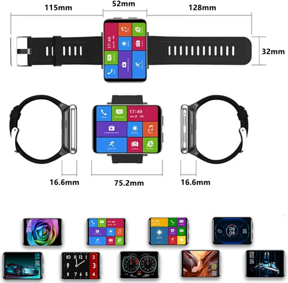 • 4G Smart Watch 2.86 Inch Screen Android 7.1 1GB+16GB 5MP Camera 2700mAh Battery Smartwatch for Men (Black, 1GB 16GB)